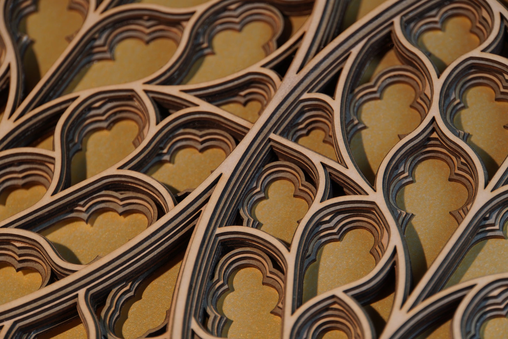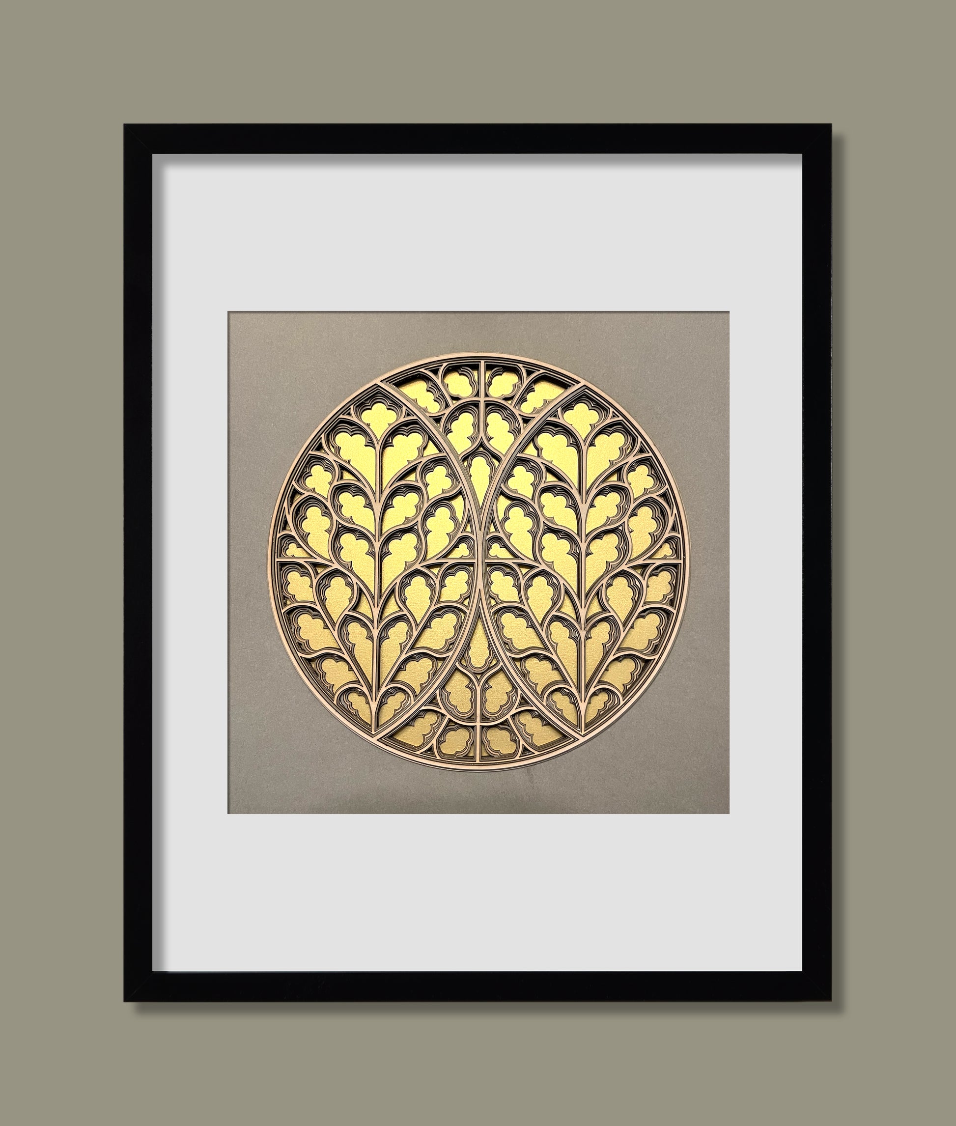 Multi layered, laser cut artwork of the world's most iconic rose window