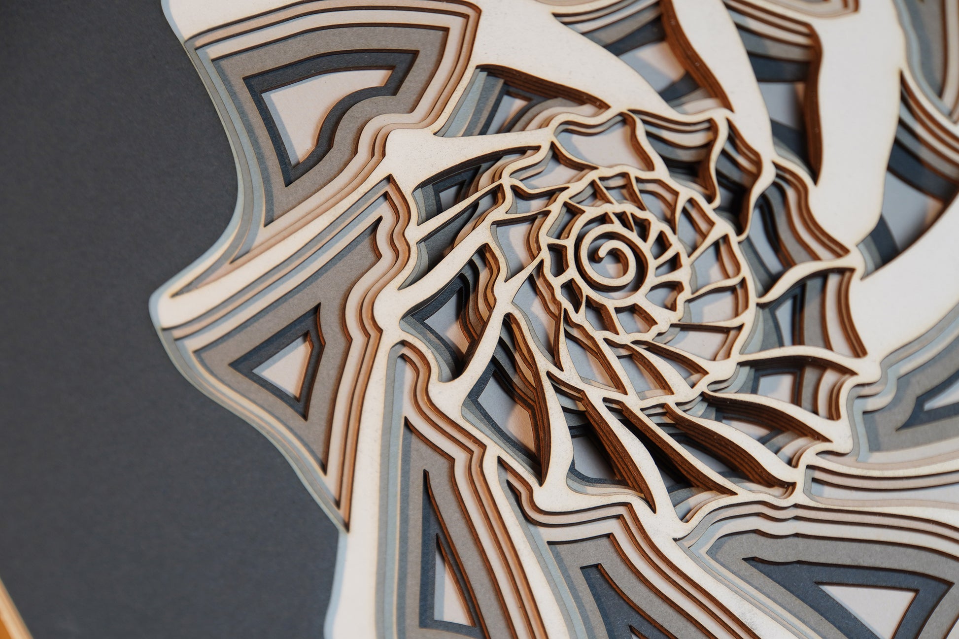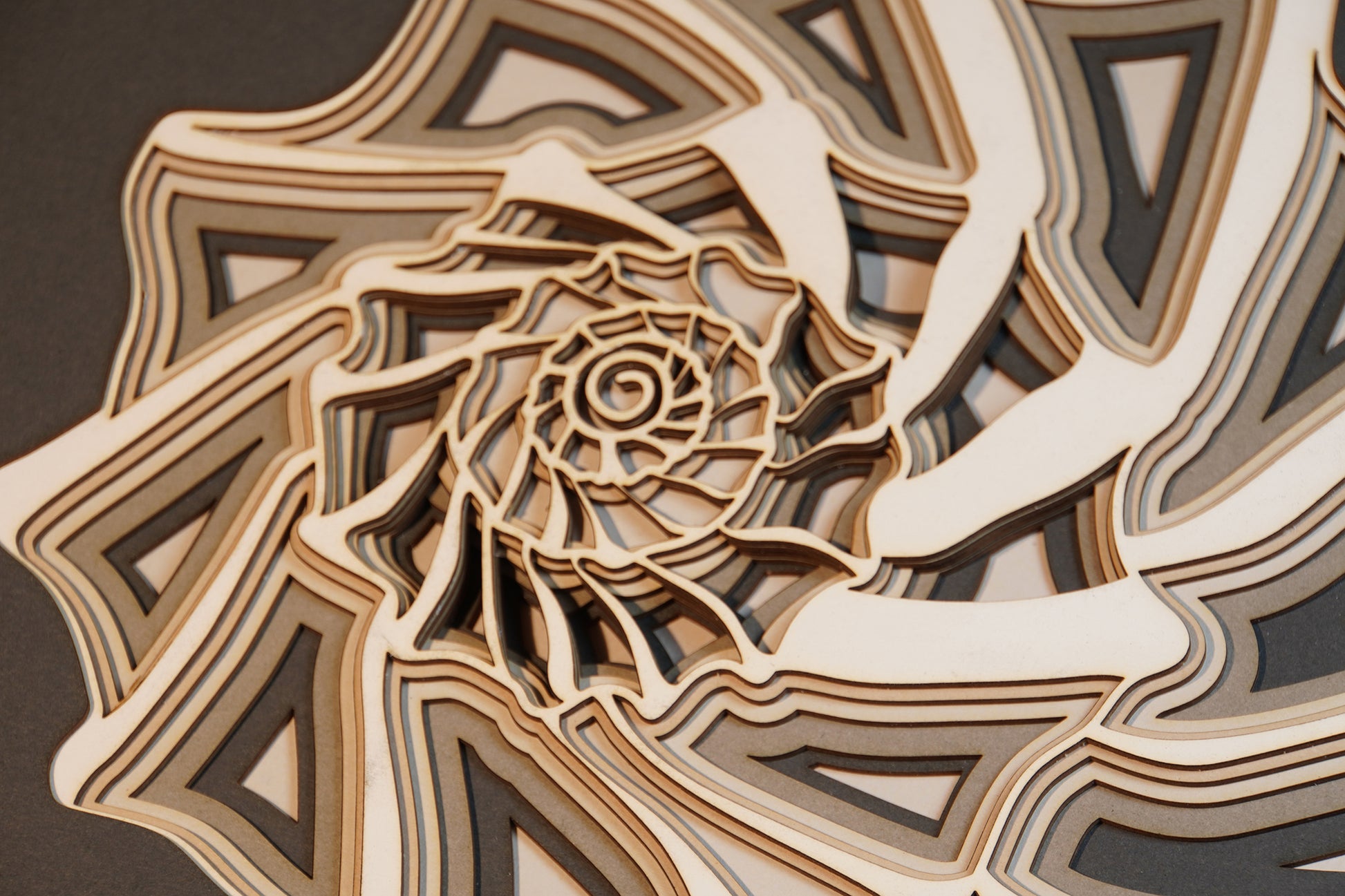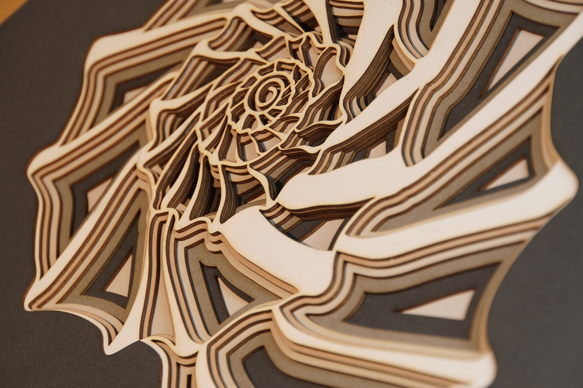 Multi layered, laser cut artwork exploring the beauty and intricacy of geometry in nature.
