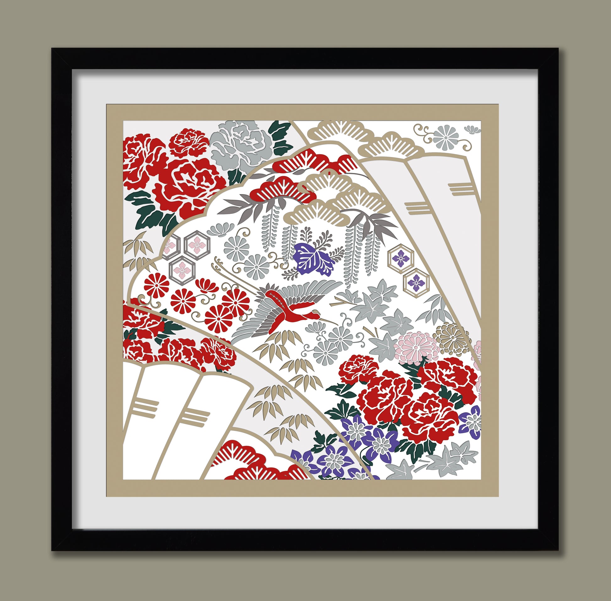 Experience a harmonious blend of tradition and creativity with this Japanese paper art design inspired by a vintage obi, which is a sash used for tying a kimono. Featuring traditional Japanese motifs, the beauty of this layered design lies not only in its visual appeal but also in the stories and symbolism behind each element. From the serene elegance of a paper crane to the vibrant colours of peonies and wisteria, the combined whole tells a unique and meaningful story.